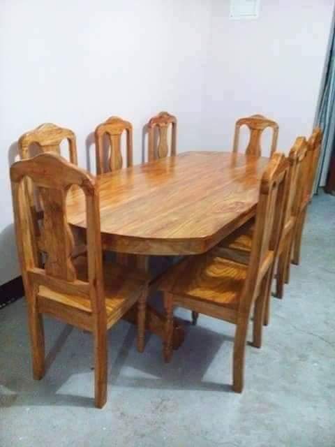 Dining Tebal Kushan 8 chair relax feel luxury work Dining table 6 fit/ 3 fit chair sagwan wooden work chair dining set Best quality policy hig glocks A1 work from Home Termite Prouf wooden fit5 length 3 fit Whath Luxury finish your dinner room Best gift 🎁 wedding furniture 🙂 Customisation के लिए कॉल करे 8709328633 Read more 1 Read more